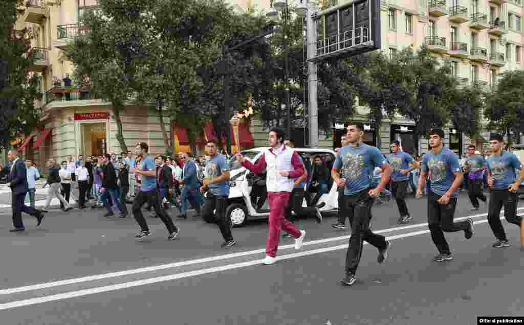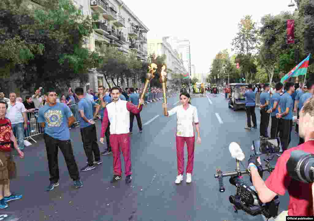 İlham Əliyev Dənizkənarı Milli Parkdakı “Sadko” limanında “Bakı-2015”in məşəlini qəbul edib. ​