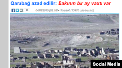 Bu xəbərdən iki həftə əvvəl dərc olunmuş məlumatda isə artıq ölkənin rəhbəri “şərlənir”: “İlham Əliyev Qarabağı geri qaytarır – Putinlə razılaşma” adlanır bu xəbər.