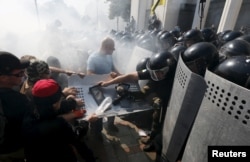 Ukrayna Konstitusiyasına əlavələr edilməsinə, Donbasa xüsusi status verilməsinə etiraz edənlər Ali Radanın qarşısında əl qumbarası partladılıb.