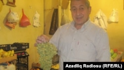 Ağ kişmiş salxımını göstərən satıcı isə malına baha deyilməsi ilə razılaşmır: