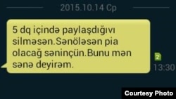 O, "Sən öləcəksən. Bunu mən sənə deyirəm", "Səni ağlar günə qoyacağıq" - kimi hədələyici mesajlar alır.