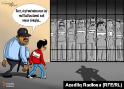 Gündüz Ağayevin bu karikaturasında da həmin sərəncama və ölkə həbsxanalarında çoxsaylı mədəniyyət, siyasət adamları, ictimai xadimlərin saxlanmasına toxunur.
