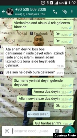 "Bakıda olduğum müddətdə ona məxsus telefon nömrəsindən zəng eləyib deyirdilər ki, "gəl bizə qoşul, ailənlə birlikdə olacaqsan". Çox savadlı danışırdı, özünü Quranı on ildən artıq müddətdə müxtəlif dillərdə oxumuş adam kimi təqdim edirdi".