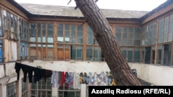 «Əvvəl sanatoriya idi. 17 ildir Laçın rayonundan olan məcburi köçkünlər yaşayır. Bina qəzalı vəziyyətdədir. Hər an uça bilər. Burada yaşamaq sağlamlıq baxımından da təhlükəlidir. Neyləyək, məcburiyyətdən yaşayırıq».