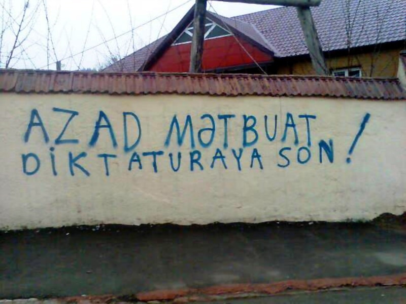 Divara status yazmaq olmaz. Çünki bu, «Facebook»-dakı yox, daşdan hörülmüş divardır. Bu divara yazı yazanı polis axtarır, üstəlik yazının məzmunu siyasi çalarlı olanda məsələ yoğunlayır. Necə ki, gədəbəyli müəllim yazmadığını iddia etdiyi divar yazısının badına gedib. Çünki bu divar yazısında  «Demokratiya! Azadlıq!», «Azad mətbuat», «Diktaturaya son» , «İlham, istefa” şüarları yazılıb. Gədəbəyli müəllim Mehman Əliyev də bu şüarları görüb. Onun şüarları gördüyünü də kimlərsə görüb və nəticədə müəllimlə polisin «dueti» başlayıb.
