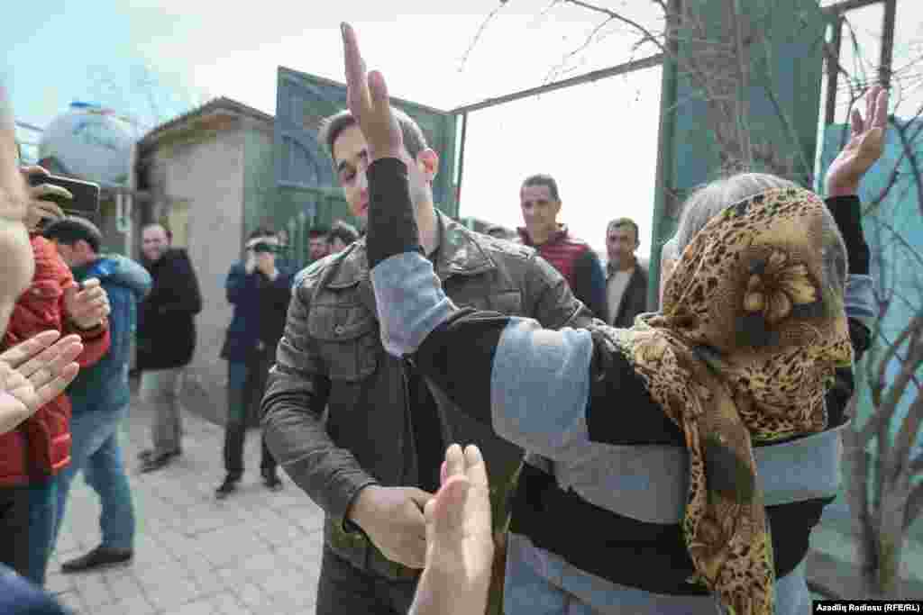 Həbsdən çıxan gənci ailəsi, dostları və qohumları qarşılayıblar.