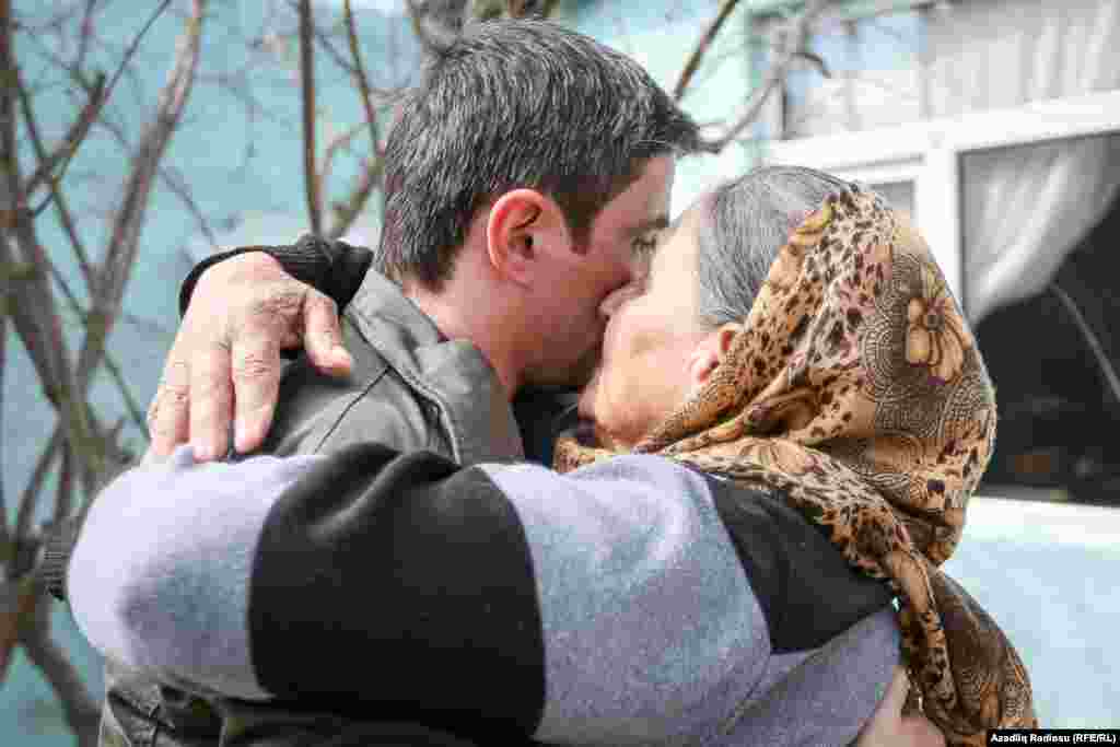 Həbsdən çıxan gənci ailəsi, dostları və qohumları qarşılayıblar.