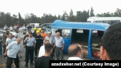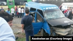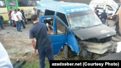 Trend-in hadisə yerində olan əməkdaşının verdiyi məlumata görə, içərisində sərnişinlər olan "Ford" markalı mikroavtobus arxadan vurulan zərbə nəticəsində idarəetməni itirib. Bundan sonra  yol kənarındakı maneəyə çırpılıb.