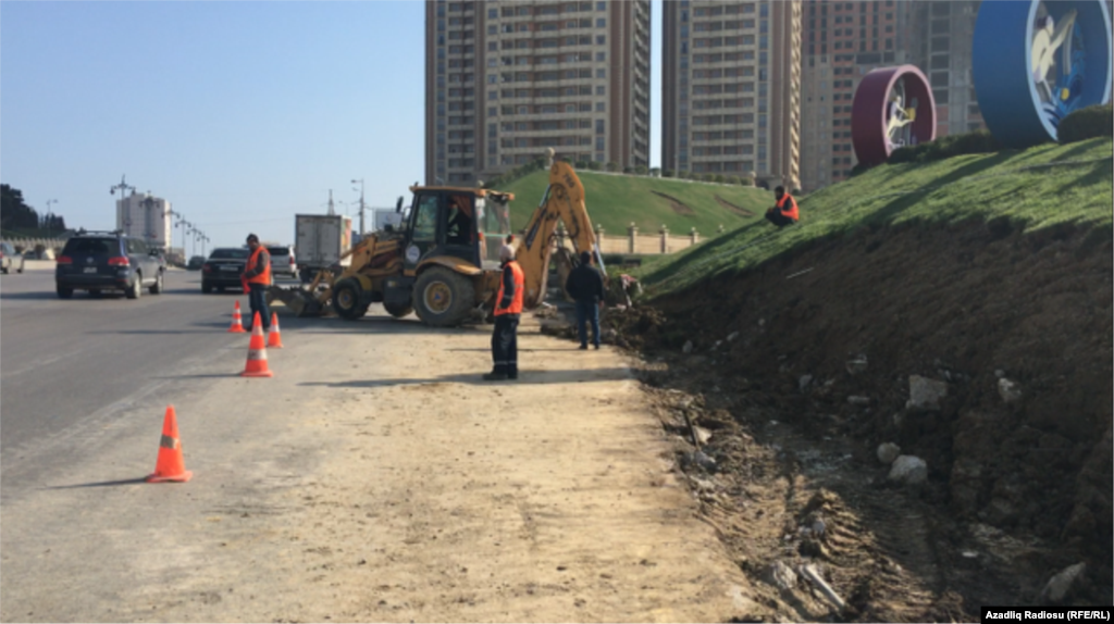 Bakı-Sumqayıt yolunda, Beynəlxalq avtovağzalın yaxınlığındakı süni təpəciklər sökülür.