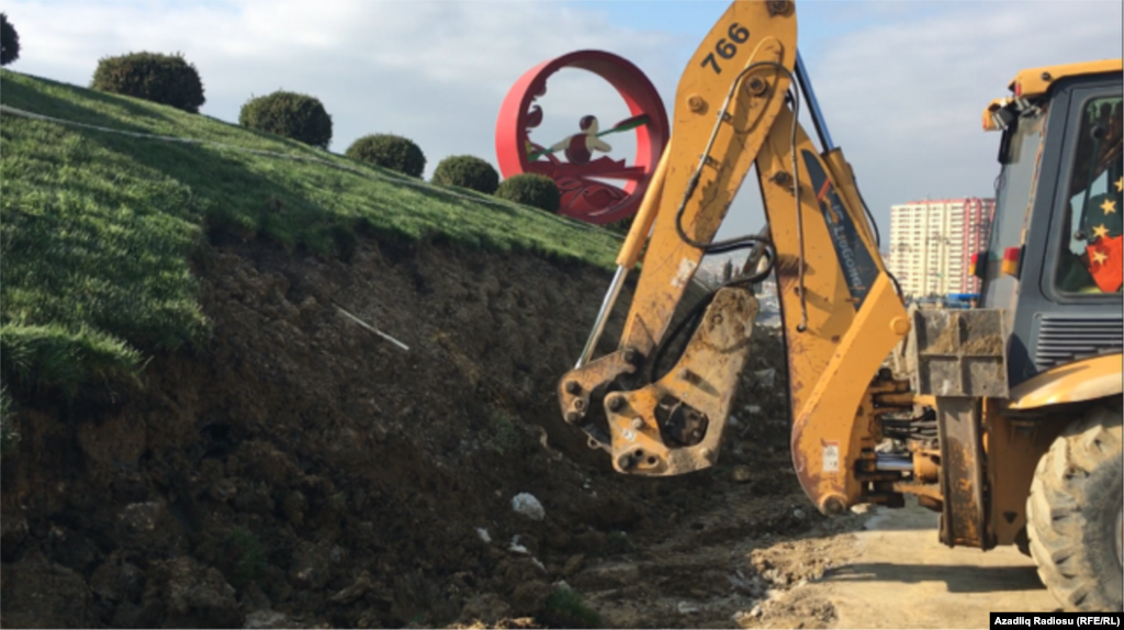 Әrazidə çalışan fəhlələr deyirlər ki, yalnız bir təpəcik söküləcək.