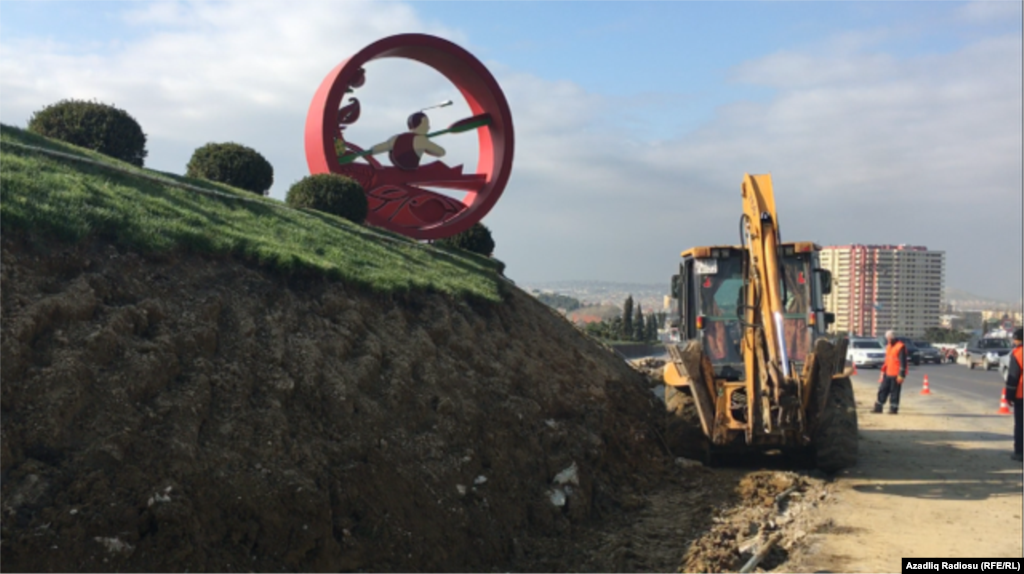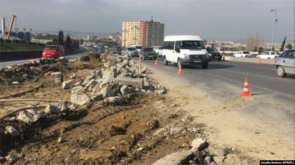 Bakı-Sumqayıt yolunda, Beynəlxalq avtovağzalın yaxınlığındakı süni təpəciklər sökülür.