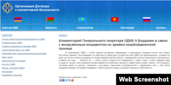 Kollektiv Təhlükəsizlik Təşkilatının saytında yer alan məlumatda "Dağlıq Qarabağ Respublikası" ifadəsi yer alıb.