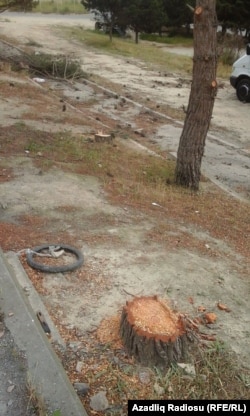 Sakin Elşən Həsənov ağacların yaxınlıqdakı şirkət tərəfindən kəsildiyini deyir: