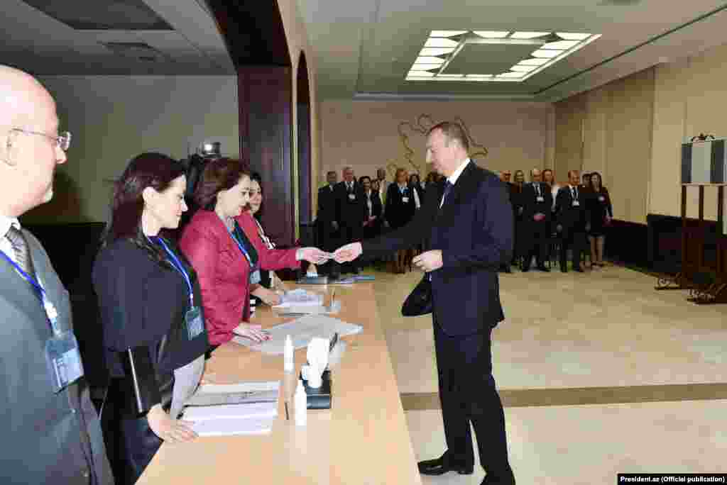 Azərbaycan prezidenti İlham Əliyev də seçkilərdə səs verib. Ailə üzvləri ilə birlikdə seçki məntəqəsində gələn prezident səs verib.