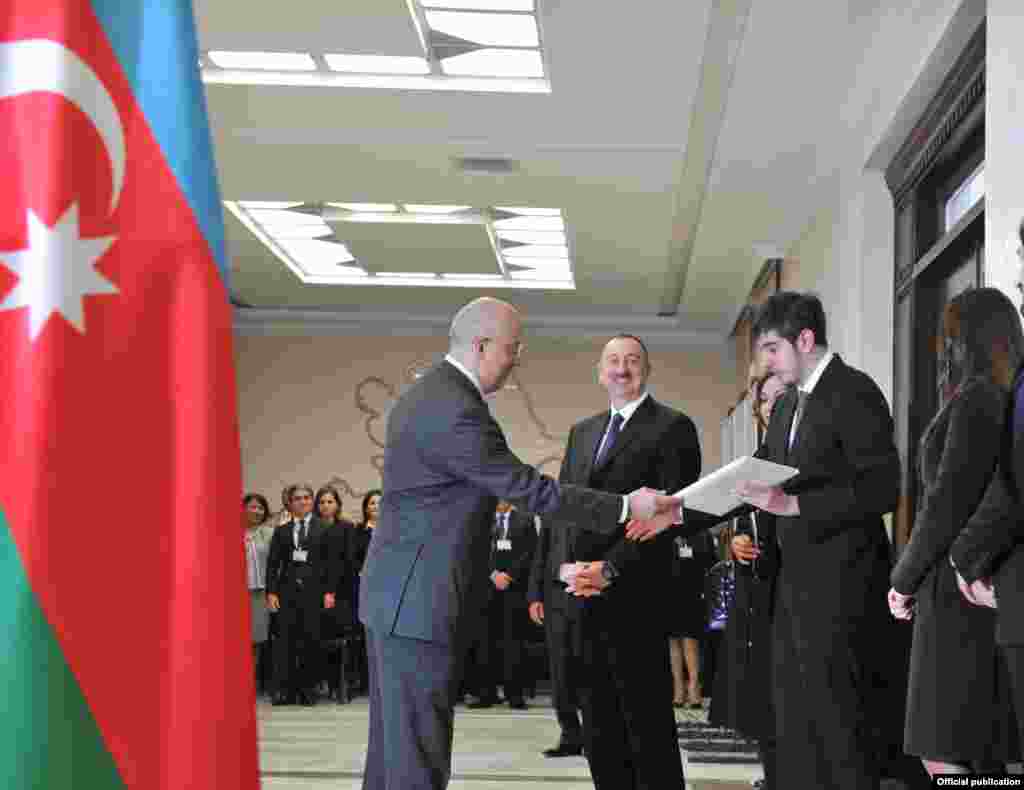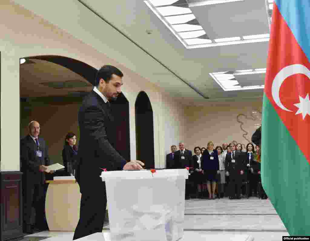 Məntəqə seçki komissiyasının sədri Rüfət Həsənov ilk dəfə səs verməsi münasibətilə İlham Əliyevin oğlu- Heydər Əliyevi Mərkəzi Seçki Komissiyasının adından təbrik edib.