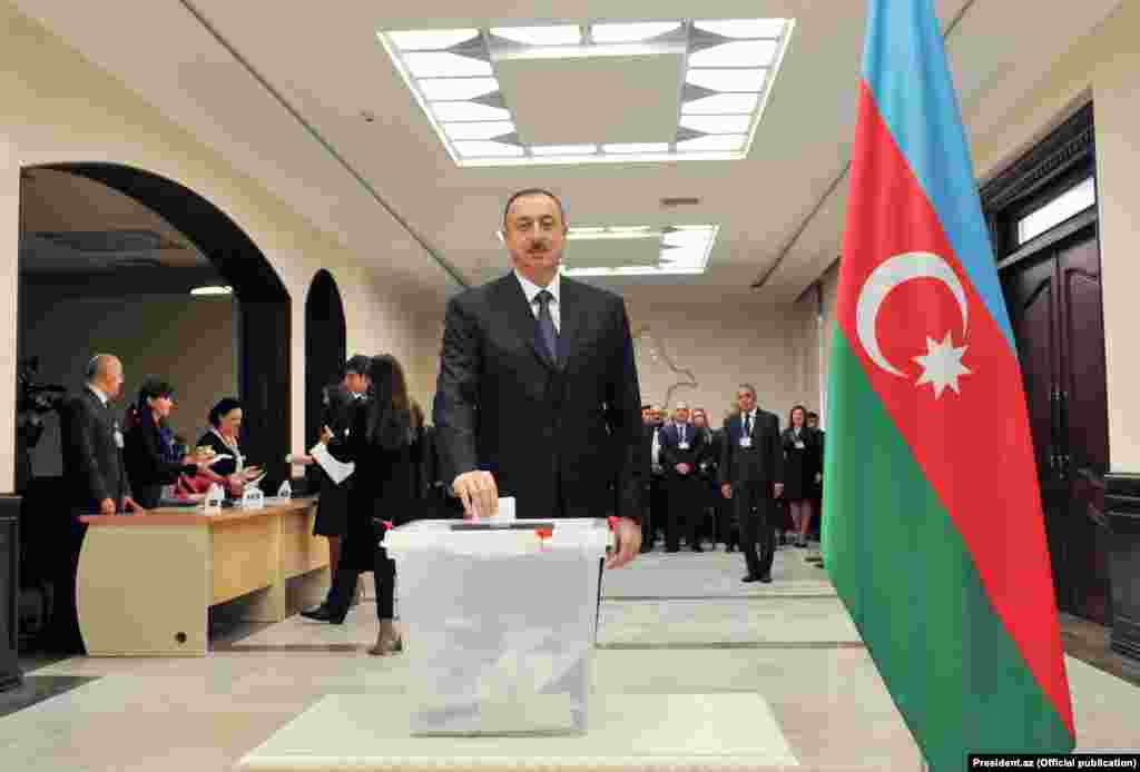 Azərbaycan prezidenti İlham Əliyev də seçkilərdə səs verib. Ailə üzvləri ilə birlikdə seçki məntəqəsində gələn prezident səs verib.