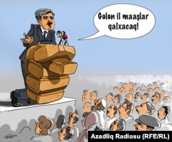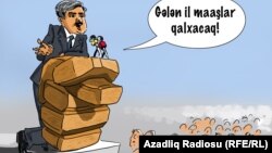 Maliyyə naziri Samir Şərifov bu yaxınlarda bildirmişdi ki, neftin qiymətinin düşməsinə görə dövlət büdcəsində gələn il çətinliklər olsa da heç bir sosial xərclər kəsilməyəcək, əksinə maaşlar artacaq. Karikaturaçı Gündüz Ağayev nazirin bu çıxış ilə bağlı aşağıdakı karikaturanı təqdim edir.