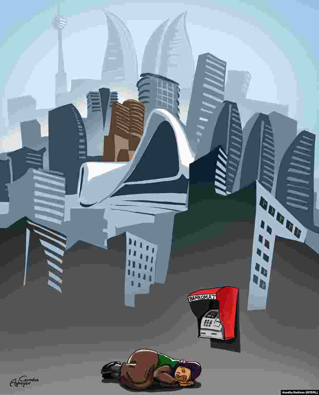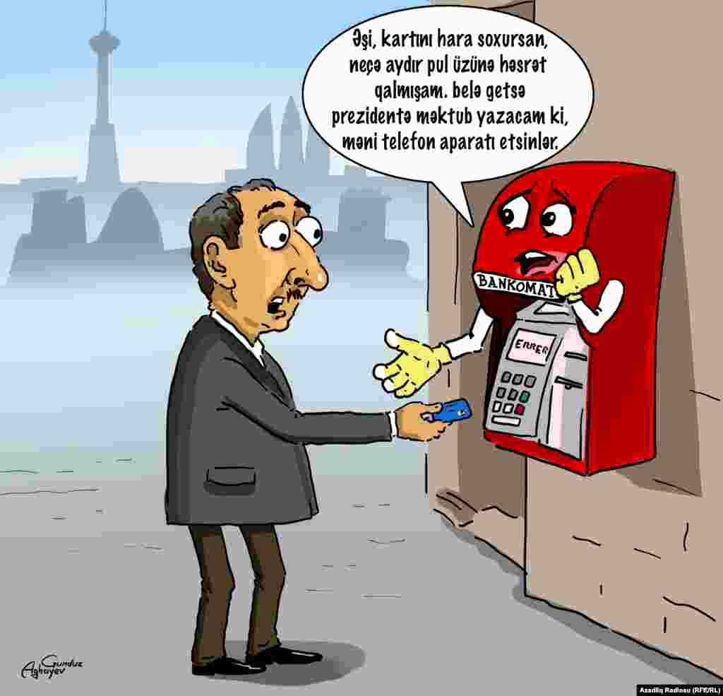 AzadlıqRadiosunda maliyyə böhranı, neftin ucuzlaşması haqda karikaturalar