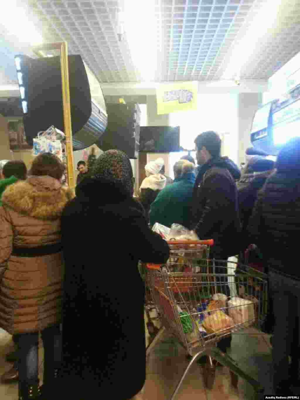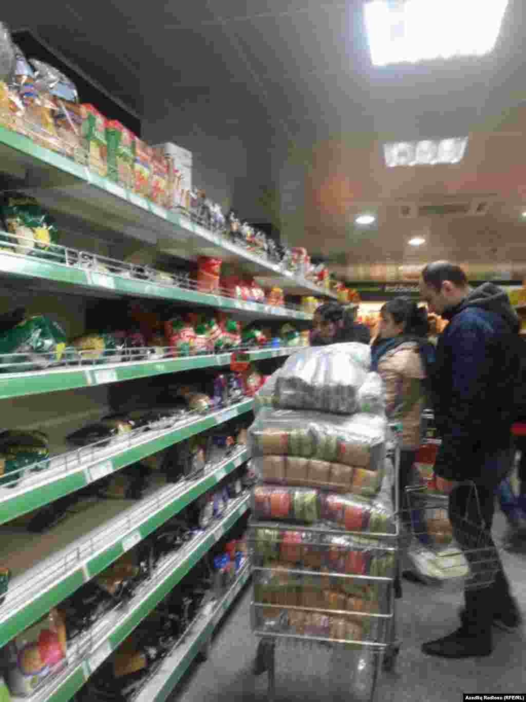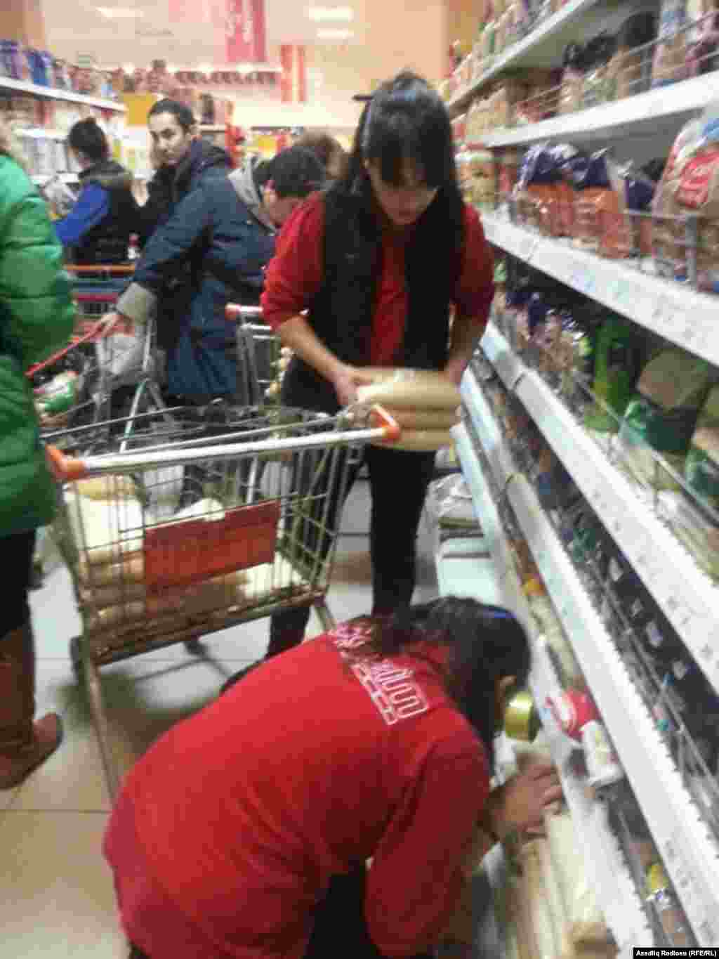 Devalvasiyadan sonra insanlar panika içində gündəlik ehtiyaclarından artıq ərzaq alıb ehtiyat yığırlar.