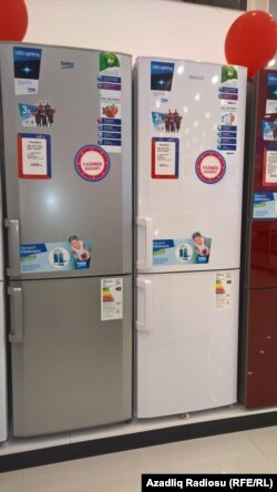 Afina Əliyeva ilə paytaxtın “Sahil” metrostansiyası yaxınlığında yerləşən iri məişət avadanlıqları mağazasında rastlaşmışıq. Mağazanın soyuducu bölməsində qiymətlər markasına və tutumuna görə 1000 manatdan başlayıb 3 minə qədər qalxır.