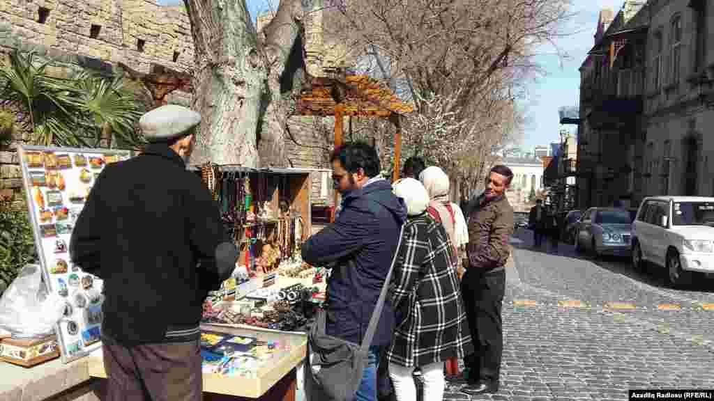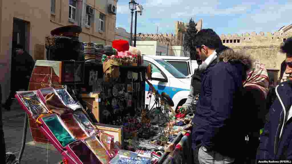 Başqa günlər Bakıda çox turist olmasa da, Novruz bayramına görə gələnlər var. Onlar da ilk öncə milli suvenirlərin satıldığı dükanlara üz tutur.