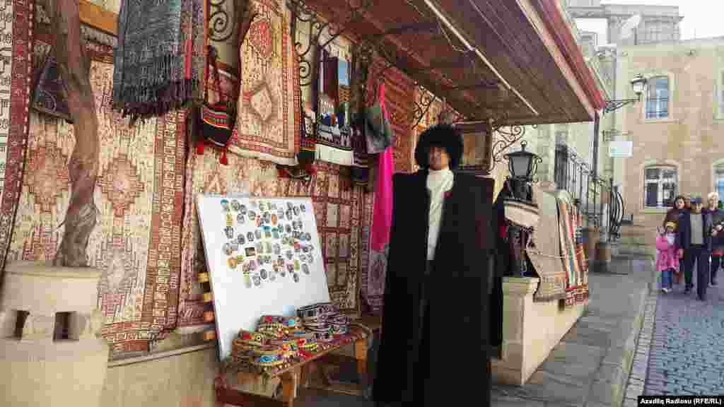 Başqa günlər Bakıda çox turist olmasa da, Novruz bayramına görə gələnlər var. Onlar da ilk öncə milli suvenirlərin satıldığı dükanlara üz tutur.