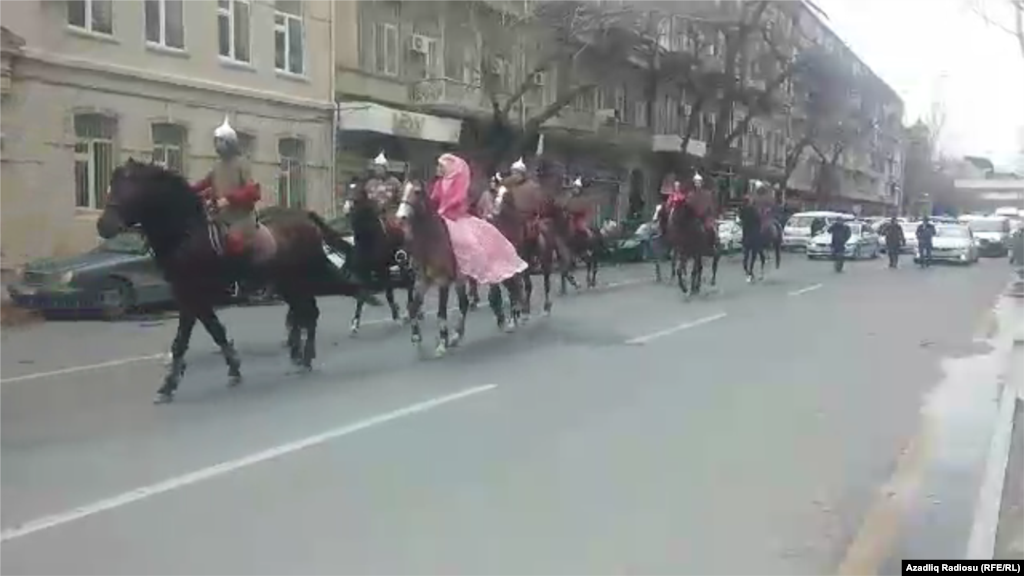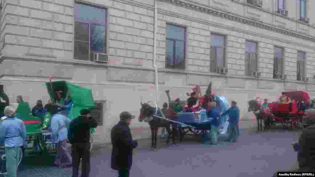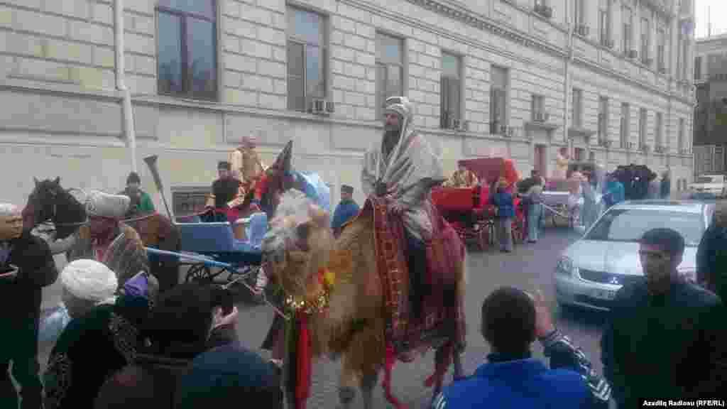Saat 10.30-da metronun "İçərişəhər" stansiyasının yaxınlığından Novruz personajları - Bahar qızı, Kosa, Keçəl və musiqi qruplarının iştirakı, dəvələr, süvarilər faytonların müşayiətilə böyük karvan Suraxanı "Atəşgahı"na yola düşüb.