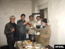 Alibəyli kəndinin sakinləri "Azadlıq" radiosunun əməkdaşı Rövşən Qənbərovu çaxıra qonaq edirlər, 27 mart 2006