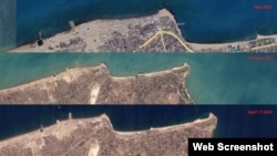 "Planet Labs"dən götürülən 2023-cü ilin oktyabrına aid görüntülər artıq süni yarımadakı tikinti işlərinin getdiyini göstərir. Bu il aprelin 17-nə aid görüntülərdənsə yarımadanın yekun şəklini aldığını görmək olur.